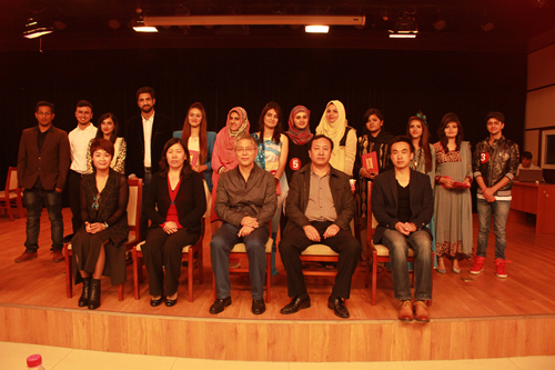 为庆祝承德医学院建校70周年,2015年9月29日下午,由国际教育学院举办的“承德医学院第四届外籍师生汉语技能暨中华才艺大赛”在图书馆多功能厅举行。学校办公室副主任梁海成、教师发展中心副主任杜少杰、护理学院涉外护理学教研室主任雷慧、第二公共外语教研室主任胡静波出席了本次大赛并担任评委。 本次比赛着重考核留学生的汉语演讲能力和中华才艺水平,每位选手均参加演讲及中华才艺展示两部分的比赛。演讲主题不限,中华才艺展示包括中文歌曲演唱、舞蹈、诗朗诵、绘画等。经过初选,共有10位选手进入了本次大赛。大赛过程中,选手们精心准备的演讲和才艺展示获得了观众的阵阵掌声。演讲《相信你自己》、《中国我家乡》、《我和中国有个约会》等声情并茂,打动人心;舞蹈《一剪梅》、《雀之美》把印度舞与中国古典舞蹈结合到一起;歌曲《朋友》、《月亮代表我的心》和绘画《中巴友谊》等给评委和观众留下了深刻的印象。选手演讲和才艺展示完毕后,梁海成主任还为留学生介绍了中国书法文化,并现场挥毫为留学生写了一个“佛”字,使留学生对中国文化的兴趣更加浓厚。 比赛在轻松愉快的气氛中结束,经评委打分,现场公布了比赛结果。一等奖由2013级Hina Muhammad Iqbal获得,二等奖由2013级Zainab Murad和Almas Anees获得,三等奖分别由2013级Hafsa Zulfiqar、2012级Somawya Asif 和Syeda Bushra Ahmed Wasti获得。