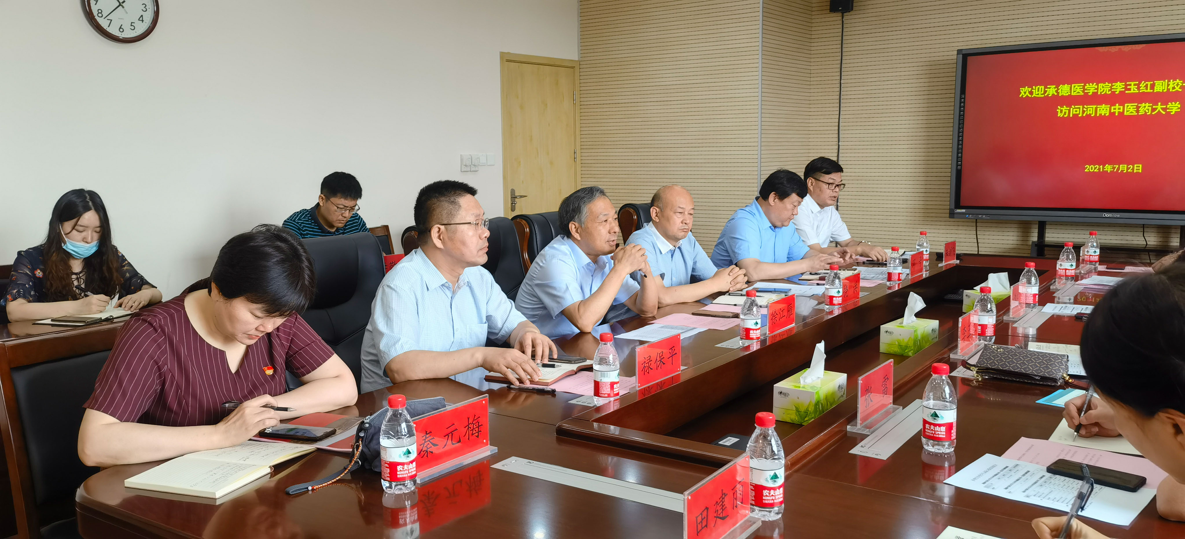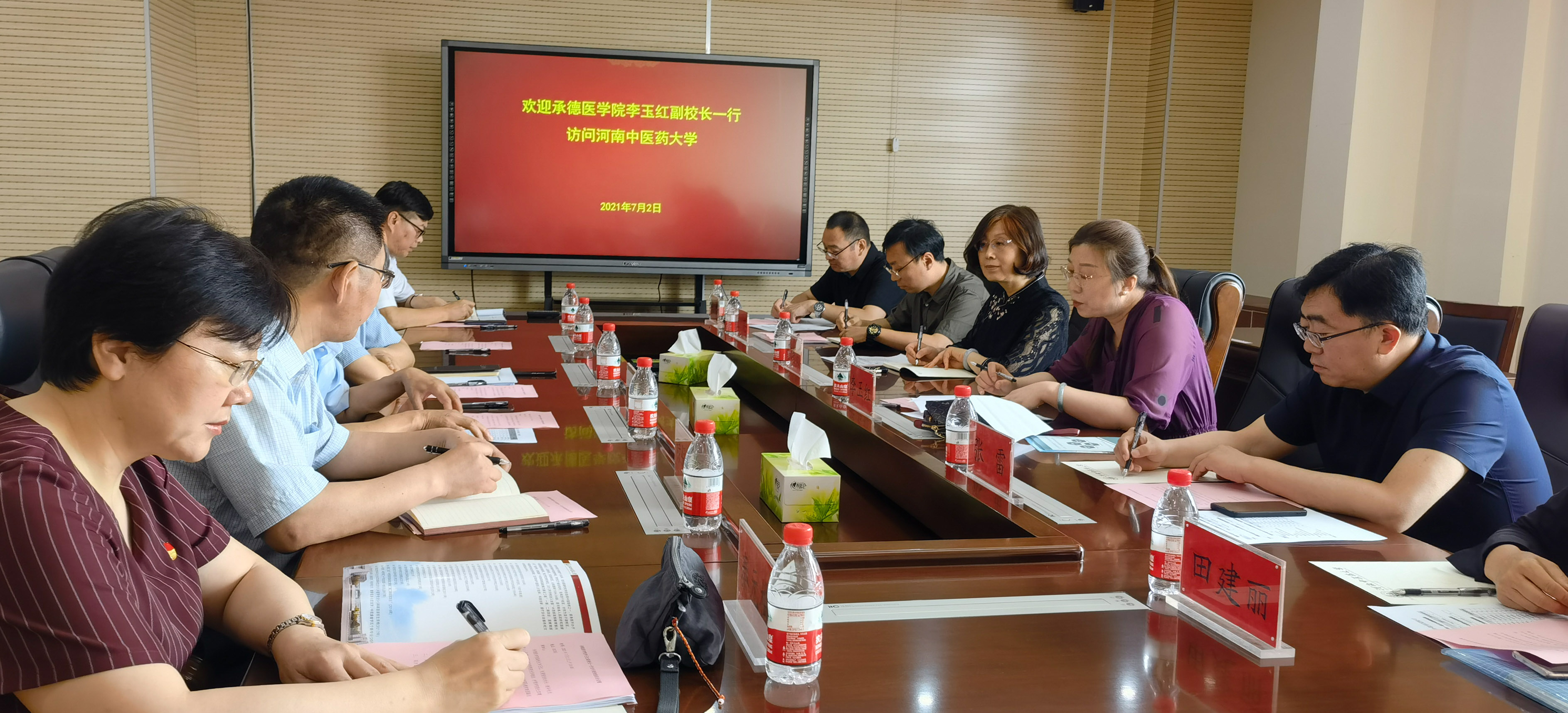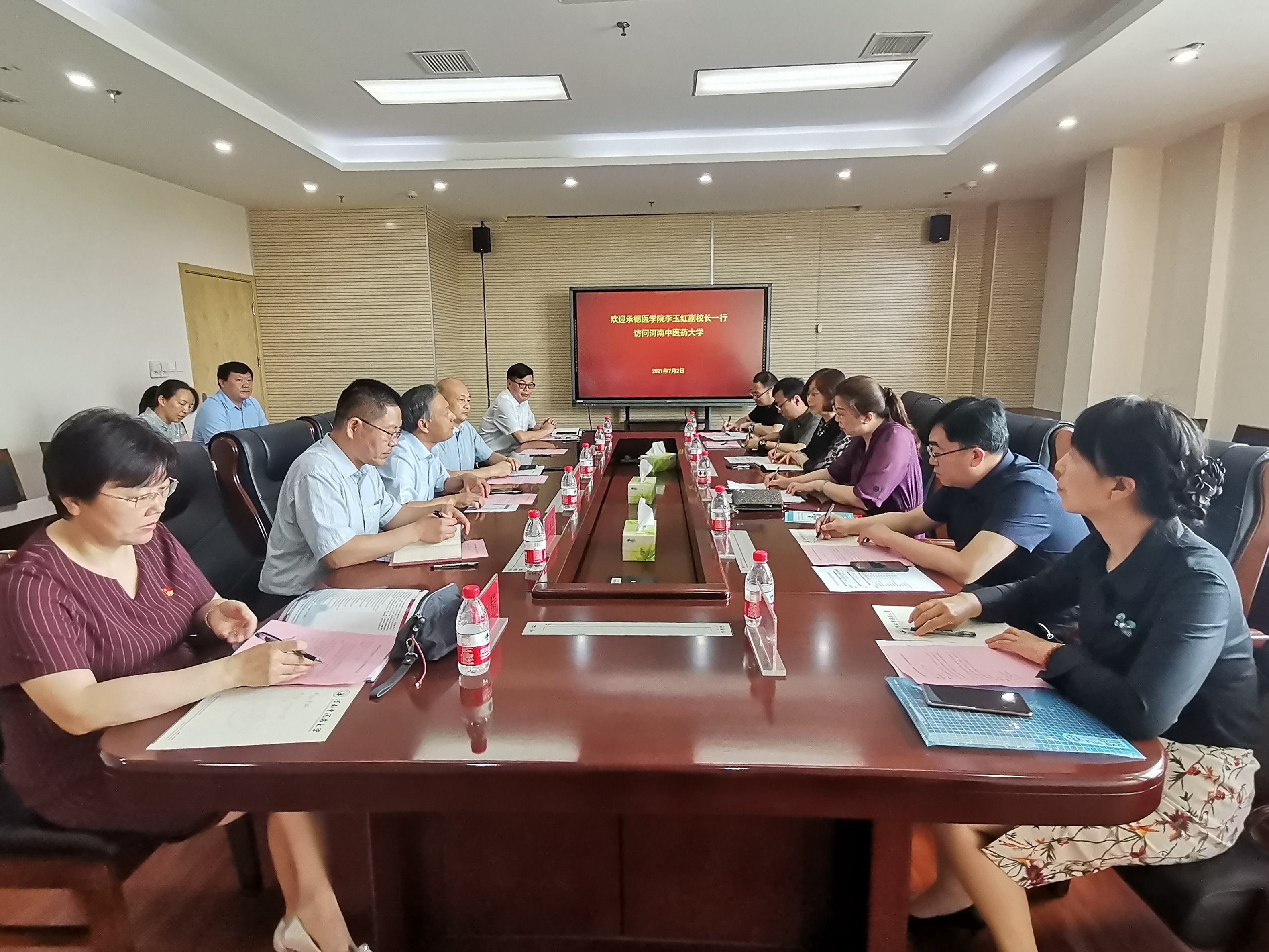 2021年7月1日-2日,副校长李玉红带领国际教育学院、教务处、护理系一行5人赴河南中医药大学进行调研和访问。河南中医药大学副校长徐江雁、国际合作处处长饶洪、副处长邓号、教务处处长禄保平、国际教育学院书记张婷婷、副院长朱剑飞、护理学院副院长秦元梅等相关负责人出席了此次交流座谈会。两校就中外合作办学、教师培养、人才培养等诸多方面进行了深度的交流和讨论。 会前,我校在河南中医药大学国际合作处的安排下,走访参观了学校的医史馆、中药馆和国家中医药国际合作基地。 (点击文中每张图片即可查看其大图)