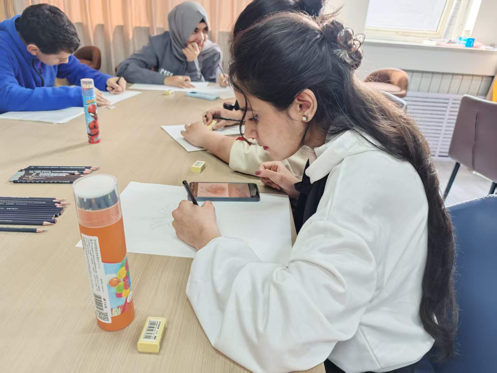 为深化医学专业素养教育,促进中外学生交流互鉴,丰富留学生校园文化生活,4 月 18 日上午 10:00,国际教育学院在学校图书馆举办留学生解剖绘图竞赛。本次活动由国际教育学院主办,学生书画协会与在校留学生共同参与,以科学精准、艺术表达为宗旨,将解剖知识与绘画创作有机融合。 活动现场秩序井然、氛围浓厚。留学生们以人体解剖结构为核心,自主选择骨骼、肌肉、器官等绘图主题,自由分组协作完成作品。大家凝神构思、细致勾勒,在一笔一画间展现对人体结构的精准理解;书画协会同学现场分享绘画技巧,协助留学生把握线条、比例与明暗关系,中外学生相互交流、取长补短,在实践中增进理解、凝聚友谊。 作品完成后,现场开展分组推荐与集中评选。从科学性、准确性、艺术性、完整性四个维度进行综合考量。参赛同学纷纷表示,此次竞赛既巩固了解剖专业知识,又提升了审美与动手能力,是一次难忘的专业实践与文化体验。 此次解剖绘图竞赛,是国际教育学院落实五育并举、强化医学人才培养的具体举措,既夯实了留学生的医学基础,又以书画为纽带搭建起中外文化交流平台,进一步提升了留学生的专业认同感与校园归属感。未来,国际教育学院将持续开展形式多样的学术与文体活动,不断丰富育人载体,助力留学生全面发展,为培养高素质国际化医学人才筑牢根基。